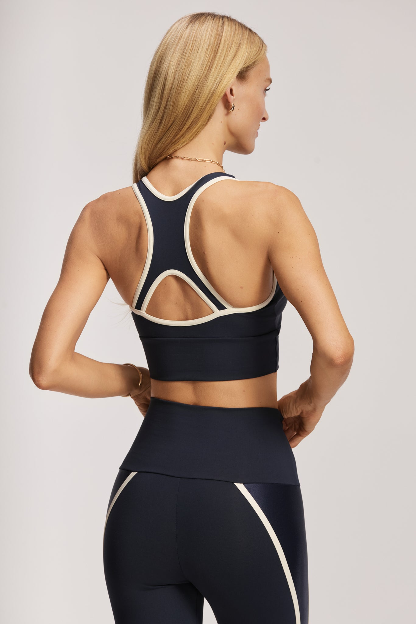 *Featuring a cropped fit, the Charly Bra Top pairs well with our popular high-rise leggings. Tip: the Valerie High Waisted Leggings come in the same matte/shiny fabric mix with flattering contrast trims.