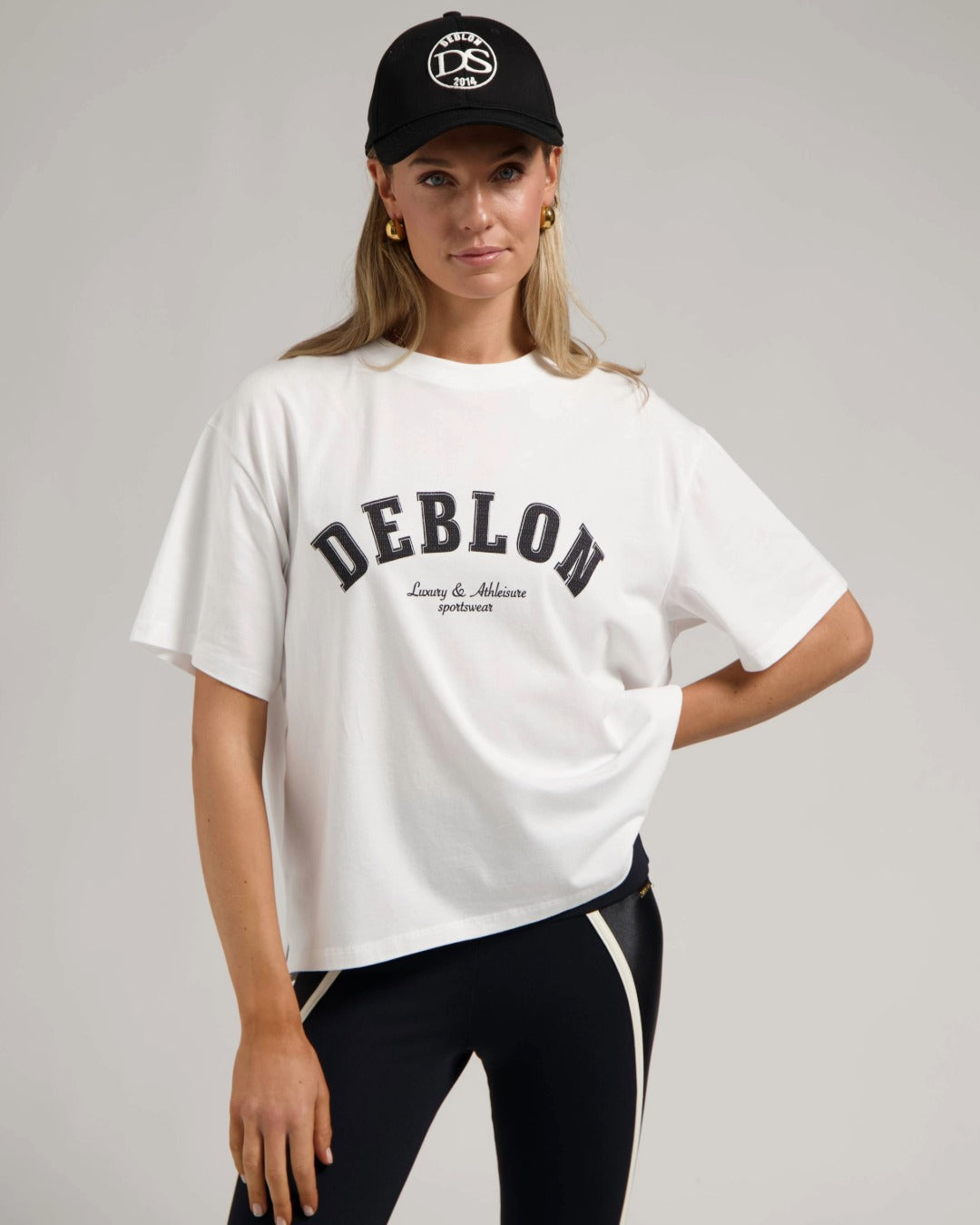 Cut in a relaxed, loose fit with dropped shoulders, the Levia Top features a bold black Deblon logo across the front. Crafted from soft, high-quality 100% cotton single jersey, it’s designed for all-day comfort and effortless style.