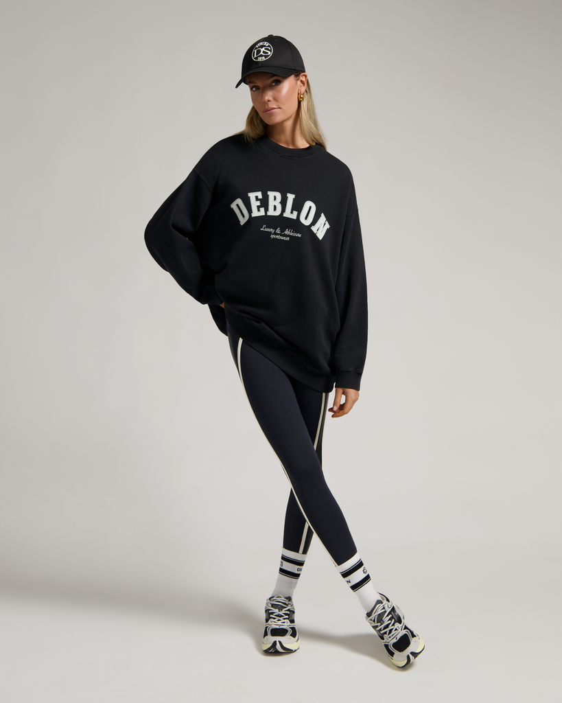 Na een inspannende workout iets zachts en comfortabels aanschieten? Deblon’s zwarte Puck Sweater is de