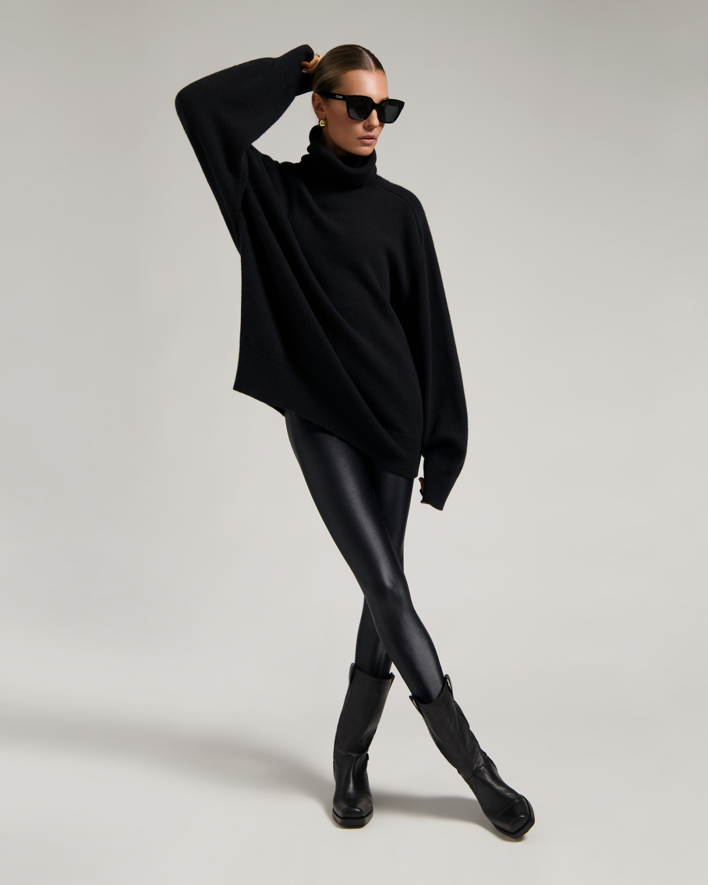 De legging is gemaakt van stevige, middelzware stretch jersey met een hoogglanzende finish. De stof biedt bewegingsvrijheid, ademend comfort en een subtiele lift. De dubbellaagse tailleband zorgt voor een gladde, gestroomlijnde look.