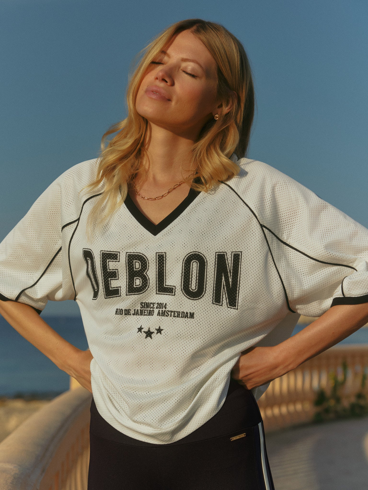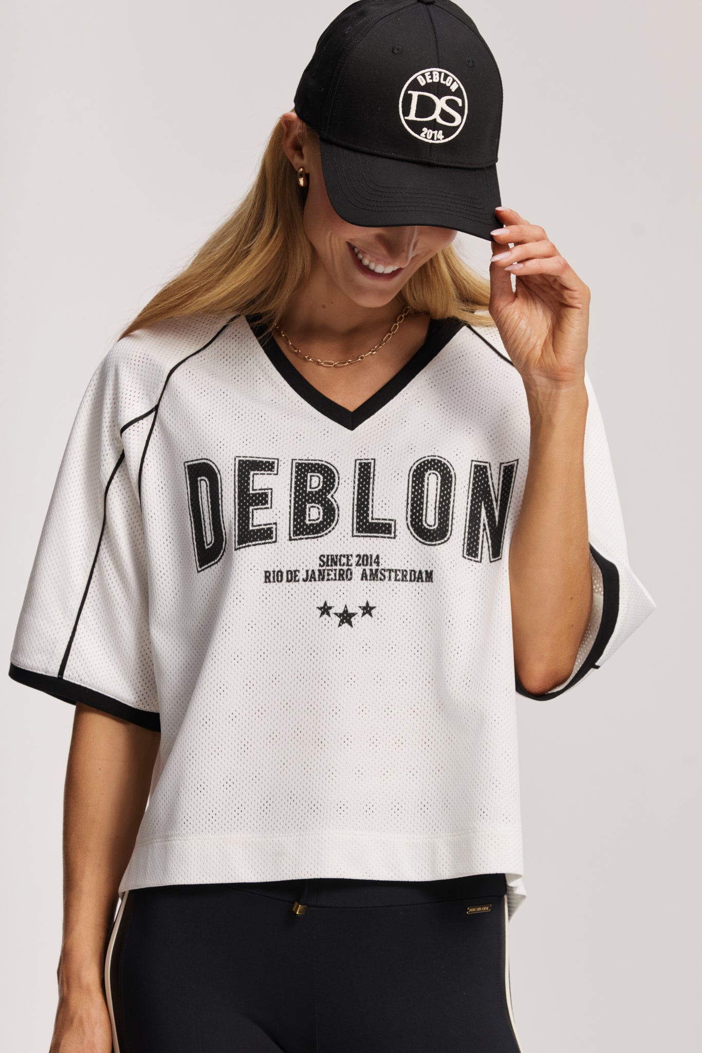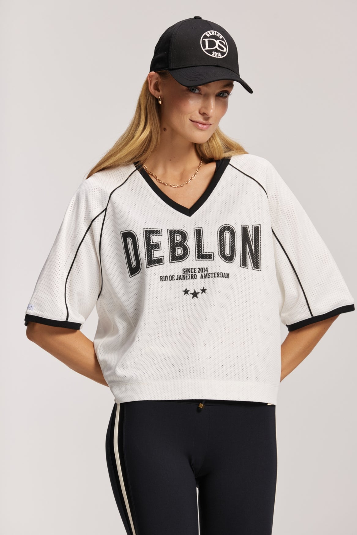The Deblon Swag, redefined. In a contemporary take on the iconic baseball jersey, our Brooklyn Tee is as classic as she is cool. Fully double-layered, the smooth mesh fabric features a nicely heavy drape. Uber breathable, moderately semi-oversized and easy to style with shorts, leggings, joggers and jeans.