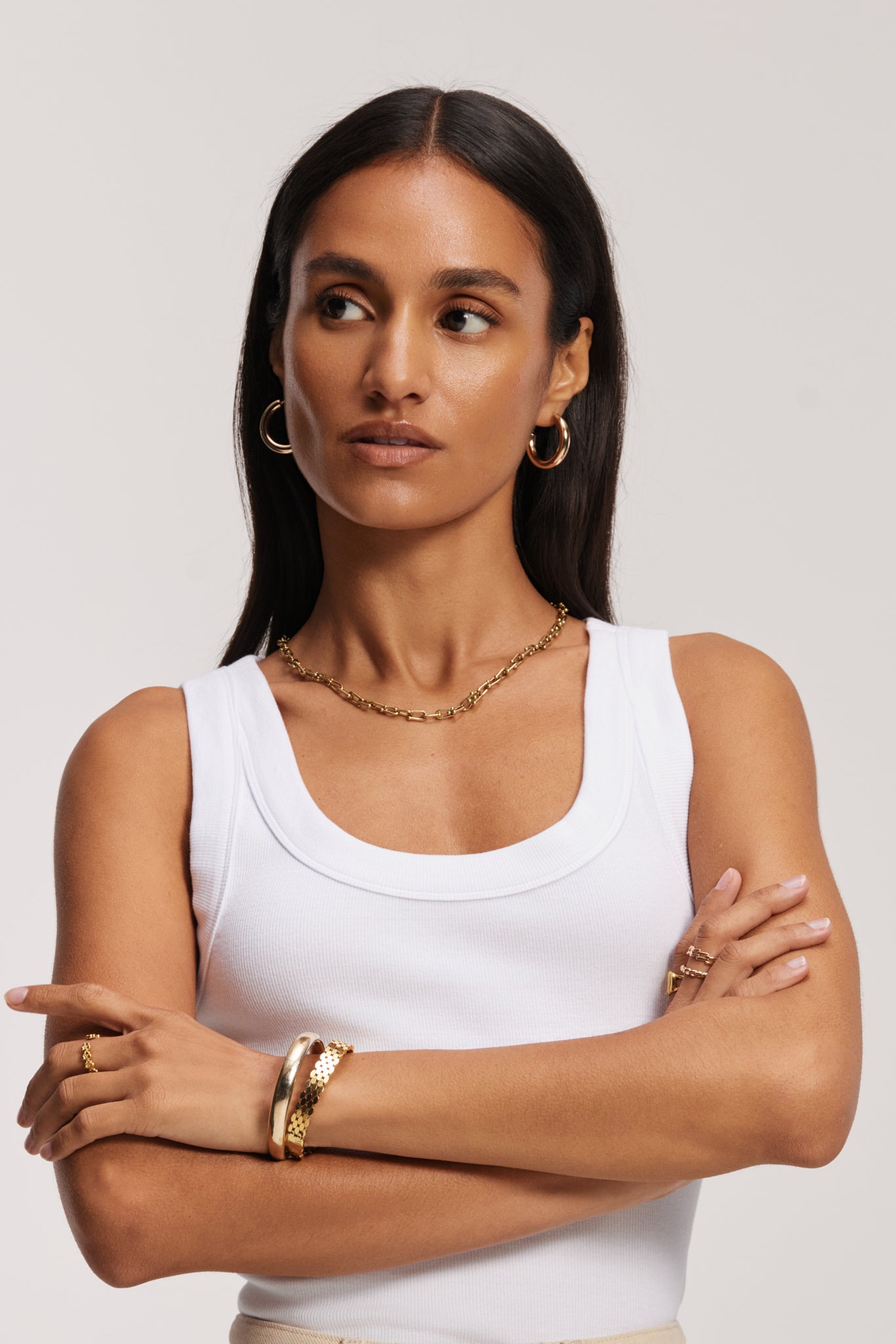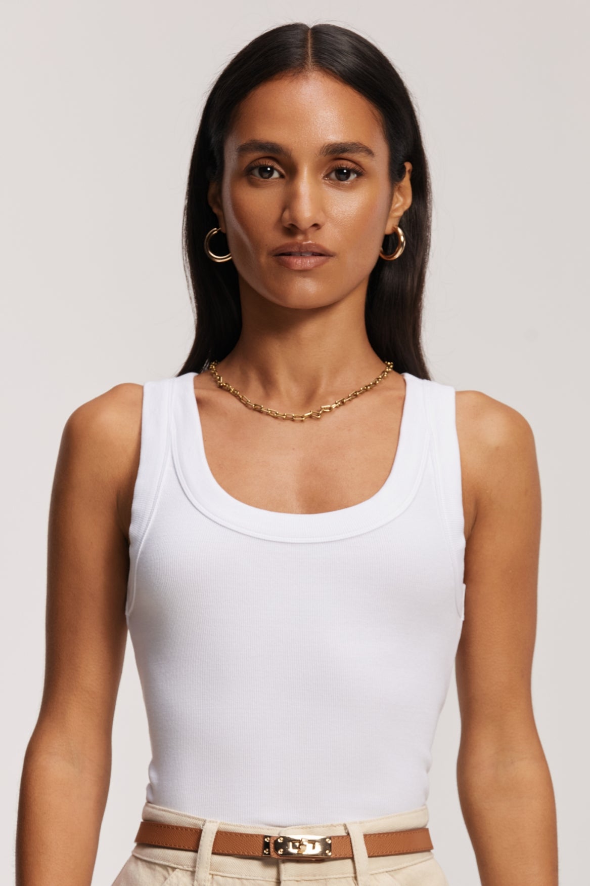 The elevated essential. When it comes to versatile styling ease, nothing beats a slim-fit tank top. Whether the starting point of layered looks or styled solo with shorts, leggings,  joggers or jeans: our Reese Singlet meets your needs. Bonus points for the broad shoulder straps, nicely covering your bra straps, as well as the shape recovery of the rib jersey, courtesy of the amount of polyester in the fabric composition.