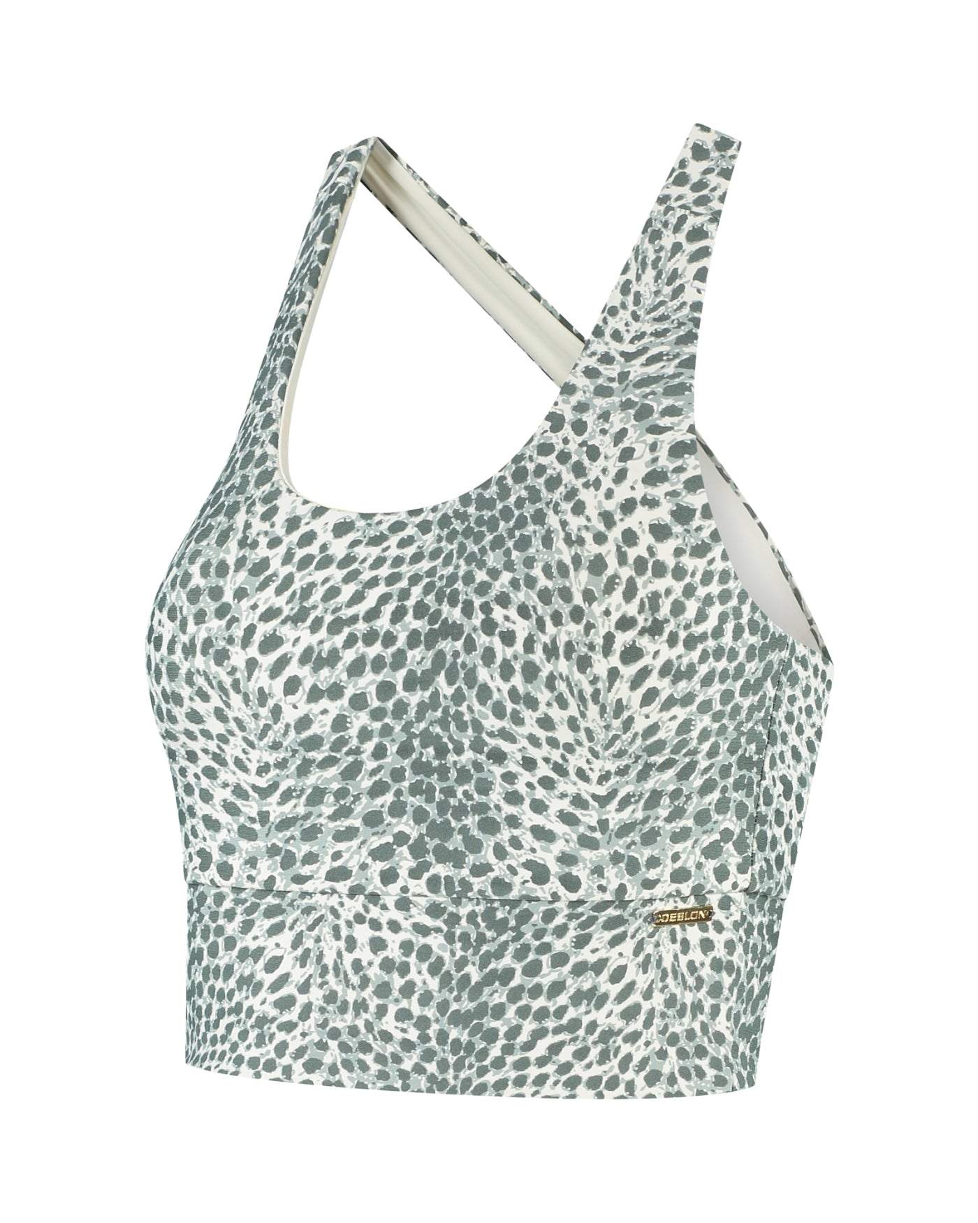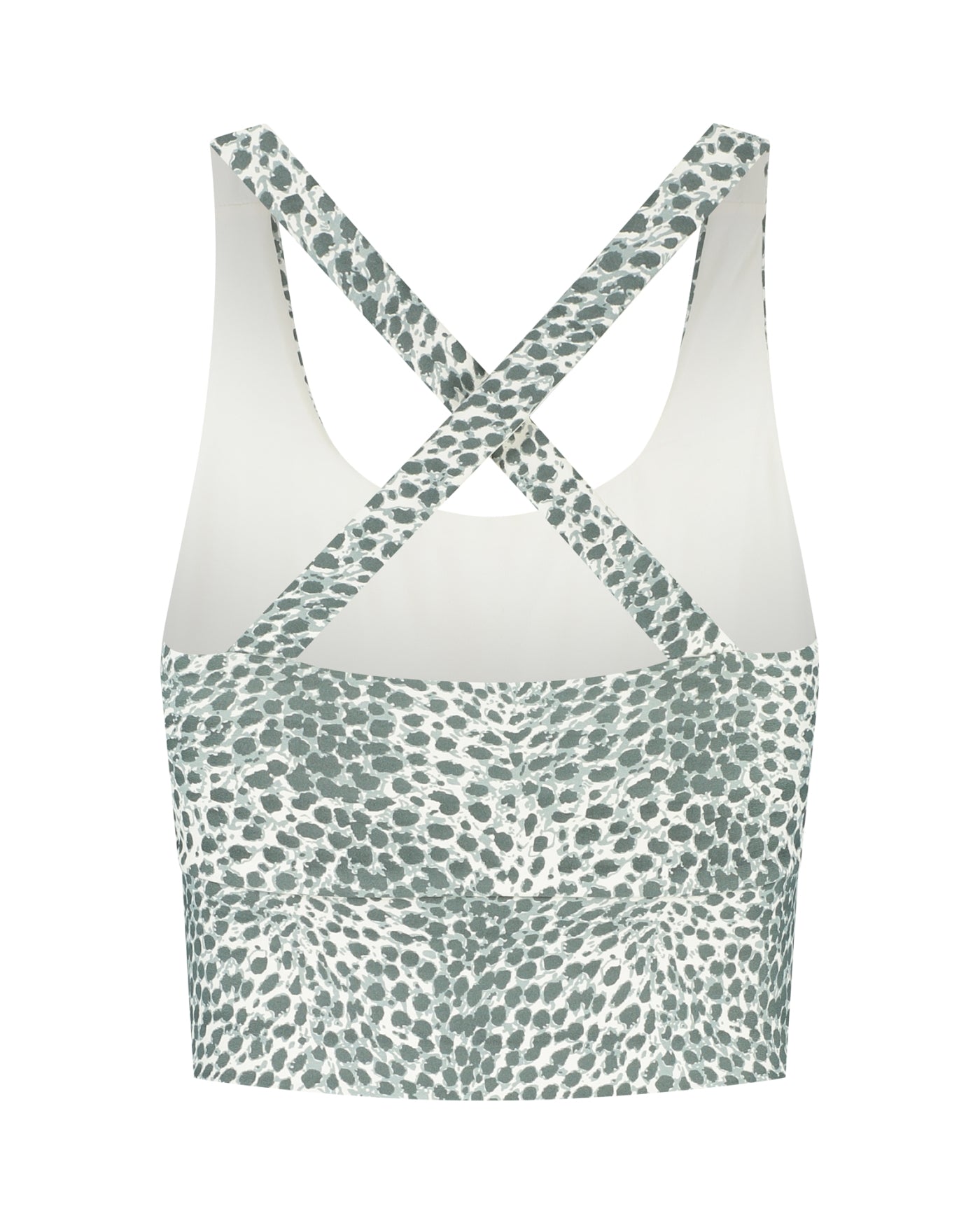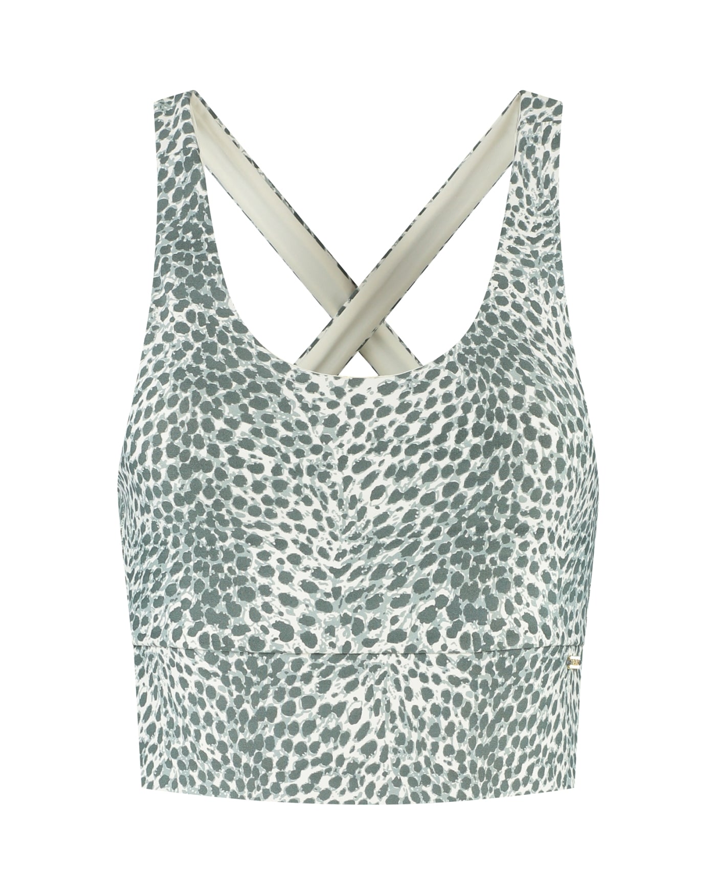 No matter how many Sarah Cross Tops you own, new prints are always welcome. Open your wardrobe doors for our iconic Cheetah print in on-trend Sage green! The familiar design with crossing back straps and removable moulded cups ensures a comfortable close fit with a high level of support.