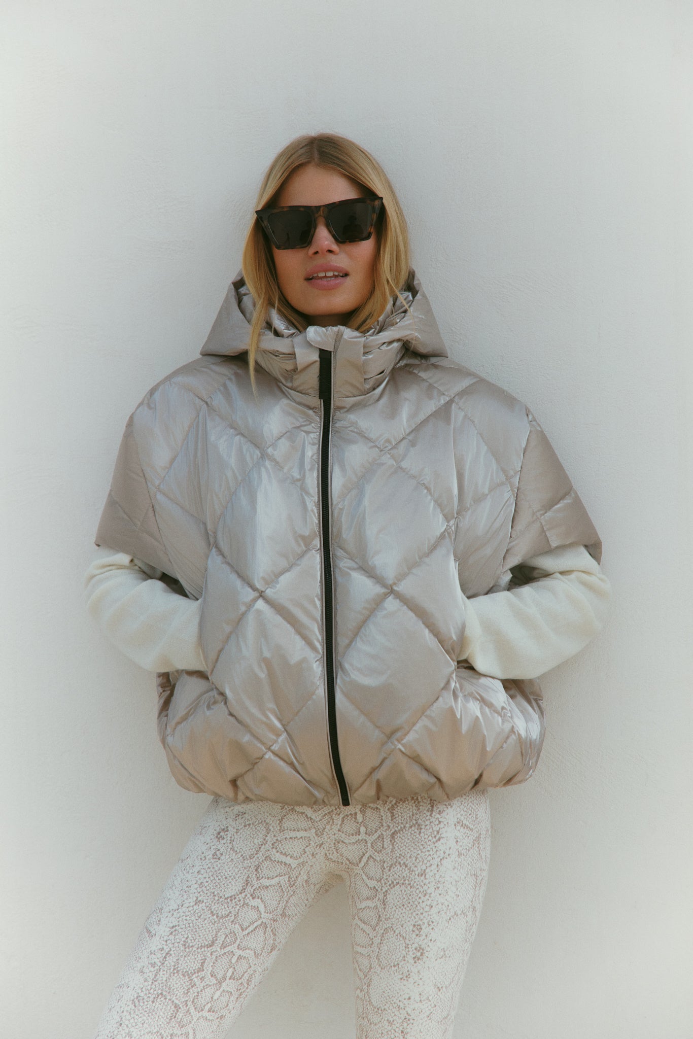Made from lightweight tech fabric with a glossy sheen. Wind proof and water repellent, insulating padding, quilted in a classic diamond pattern.